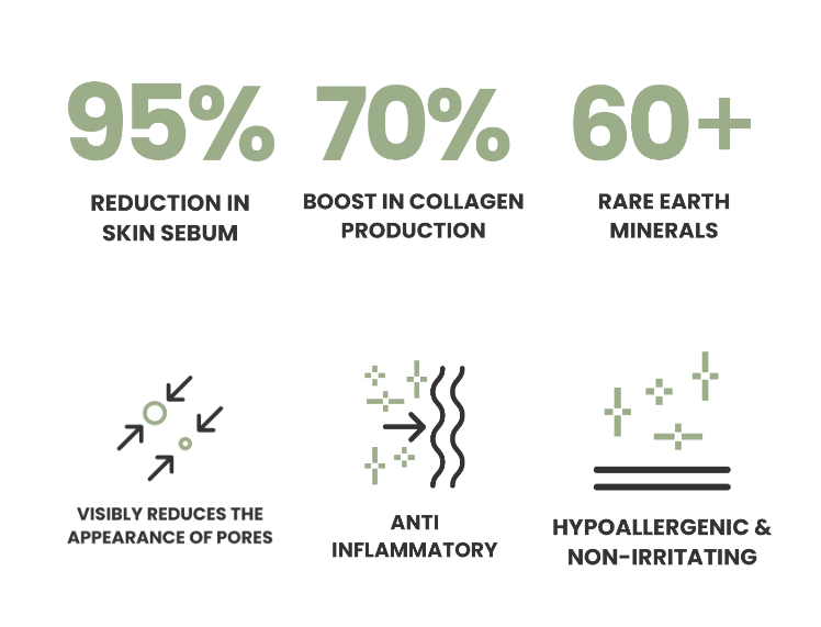 Glacial Clay is more than just a natural wonder; it’s a clinically proven powerhouse for your skin. It’s proven to reduce oil on the face by an astonishing 95% and tighten pores after just one use, leaving your complexion clear, refined, and glowing.